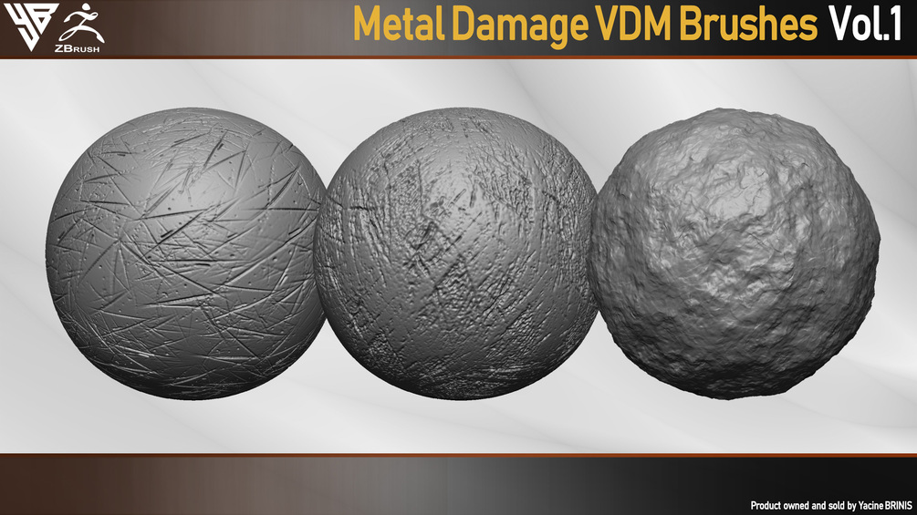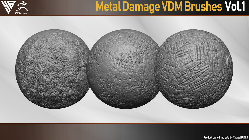 50 VDM Metal Damage Brushes for ZBrush + 50 Alphas. Vol 1 (Metal Textures)