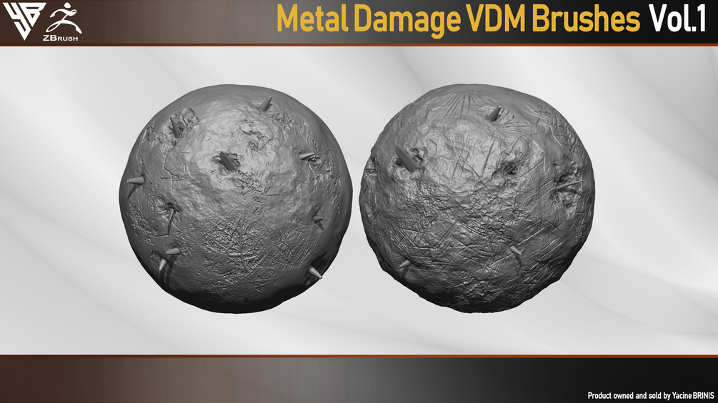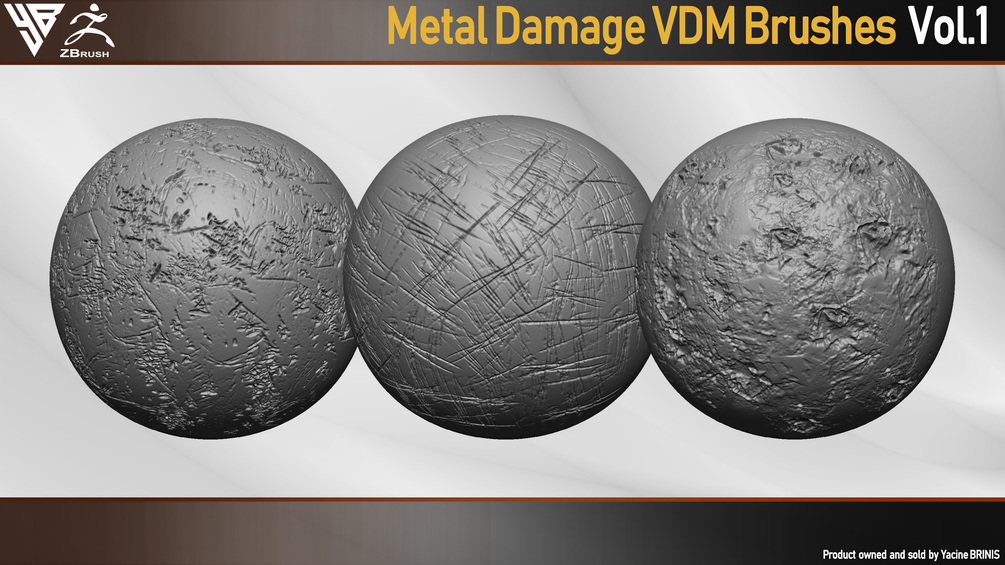50 VDM Metal Damage Brushes for ZBrush + 50 Alphas. Vol 1 (Metal Textures)